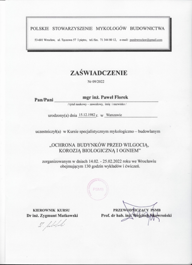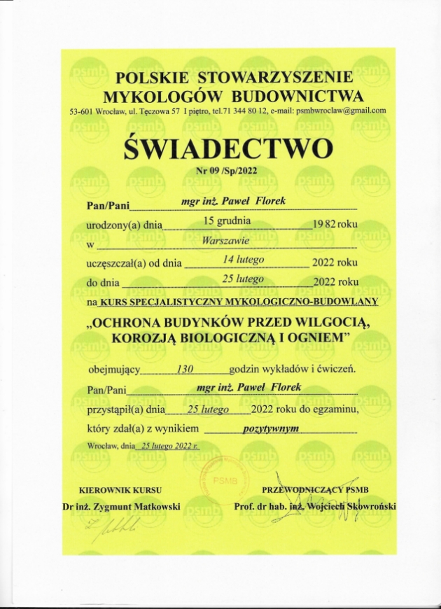 Jeżeli uważacie Państwo, że korozja biologiczna zagraża użytkowanym przez Was budynkom lub widoczne są obszary zawilgocenia – zapraszam do kontaktu. Jako mykolog o dużym doświadczeniu wykonam wszystkie niezbędne badania dla mykologii budowlanej i przygotuję opinię mykologiczną. Pozwoli ona rozpoznać patologię występującą w danym obiekcie i rozpocząć proces naprawczy.
